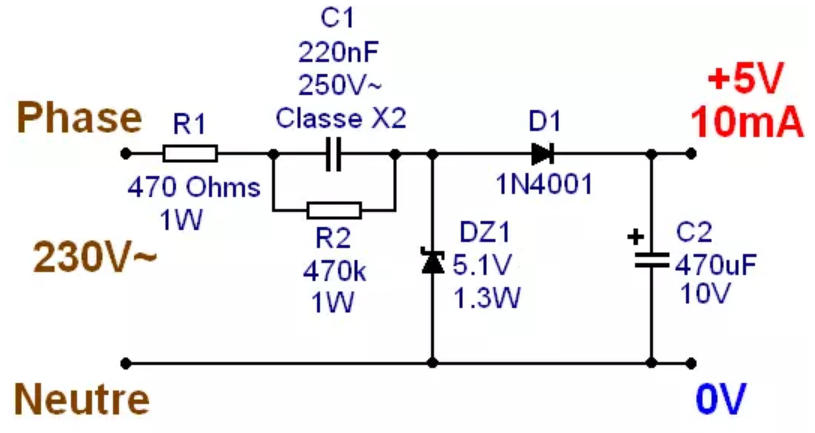 Objectif : comprendre le fonctionnement d'une alimentation capacitive assez simple,